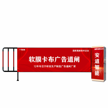 型卡布灯箱软膜广告道闸 软膜卡布广告道闸一体机: 供电电源 :直流 24V ±10% 10A ;电机功率 :140W ;静态功率 :<2W; 抬闸/落闸速度 :3-6秒可调 ;运行环境温度 :-40℃~80℃; 运行环境湿度:30%~80%(无凝露);